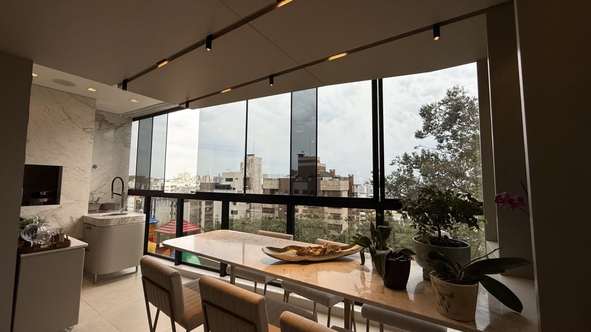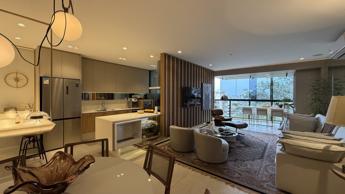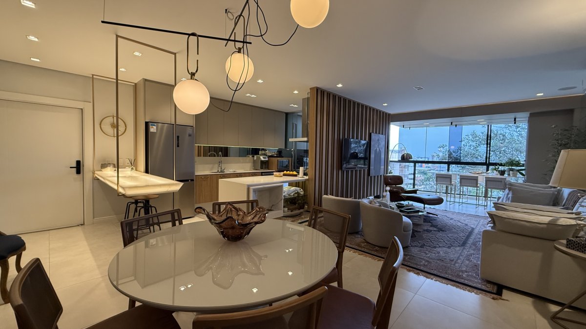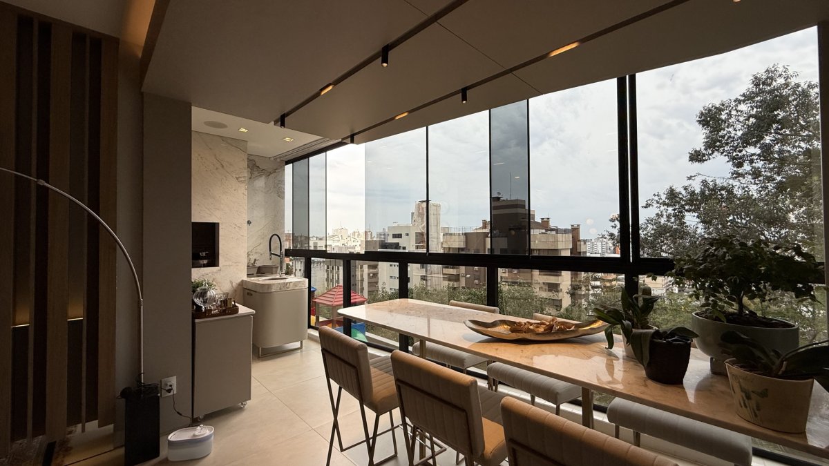 O apartamento está localizado em Centro, Criciúma, no condomínio Selenza Residence, com 152,58 m² privativos, 3 dormitórios (1 suíte), lavado, sala de estar e jantar conjugadas e 3 vagas de garagem.