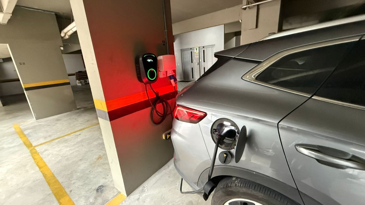 A entrada conta com fechadura eletrônica com biometria. São 02 boxes de garagem lado a lado e carregador para carro elétrico já instalado.